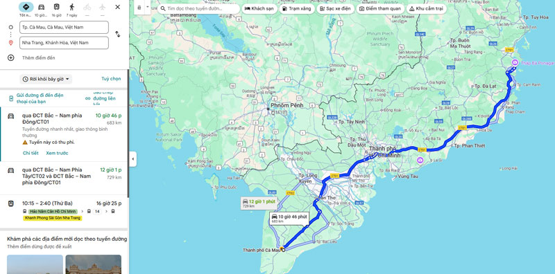 1. Khoảng cách từ Cà Mau đi Nha Trang bao xa? Đi mất bao lâu?